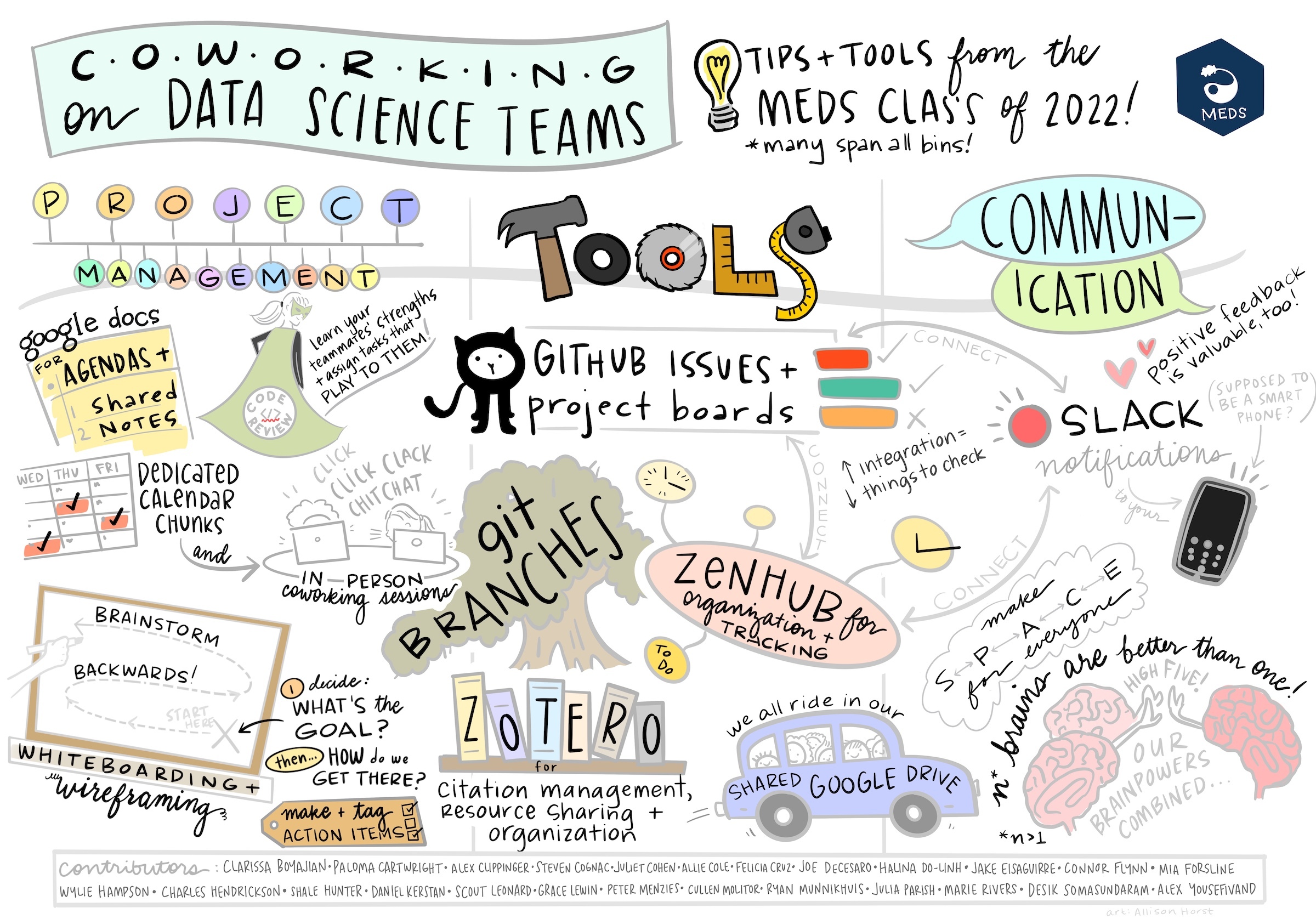 Artwork by Allison Horst for the MEDS program, this captures how we work too!